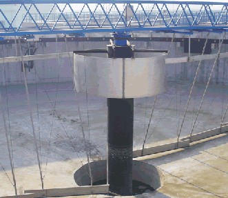 刮泥機,是一種排泥設(shè)備。組成部分:刮泥機由桁車、刮泥耙、撇渣板、驅(qū)動裝置和自控柜等到組成。分類:刮泥機主要有中心傳動刮泥機、周邊傳動刮泥機。中心傳動刮泥機主要由工作橋、傳動裝置、穩(wěn)流筒、傳動軸、刮臂、刮泥板等組成。該機設(shè)有橫跨池子的固定平臺,工作時其整機載荷都作用在工作橋中心;污水經(jīng)池中心穩(wěn)流筒均流到四周。隨著過流面積增大而流速降低,污水中的沉淀物沉淀于池底,刮泥機將沉淀的污泥刮集到中心集泥坑中,利用水壓將其從污泥管中排出。該機結(jié)構(gòu)簡單,傳動平穩(wěn),動力消耗低,刮泥效果好,是一種理想的排泥設(shè)備;周邊傳動刮泥機用于城市污水處理廠、自來水廠以及工業(yè)廢水處理中輻流式圓形沉淀池和濃縮池中,排除沉降在池底的污泥和撇除池面的浮渣。應用領(lǐng)域:刮泥機主要應用于鋼鐵、冶金、礦山、水處理等行業(yè)。